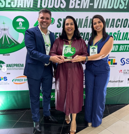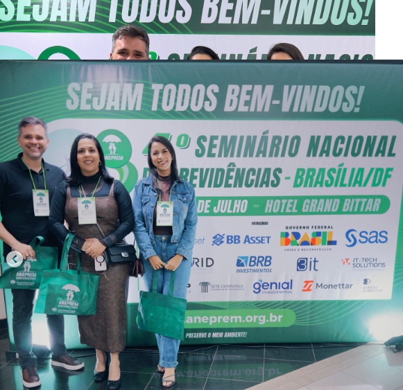 ANEPREM, realizado de 29 a 31 de julho, em Brasília. Representando a autarquia, participam a presidente Fernanda Melo, o vice-presidente José Neto e a analista previdenciária Rozângela Batista.